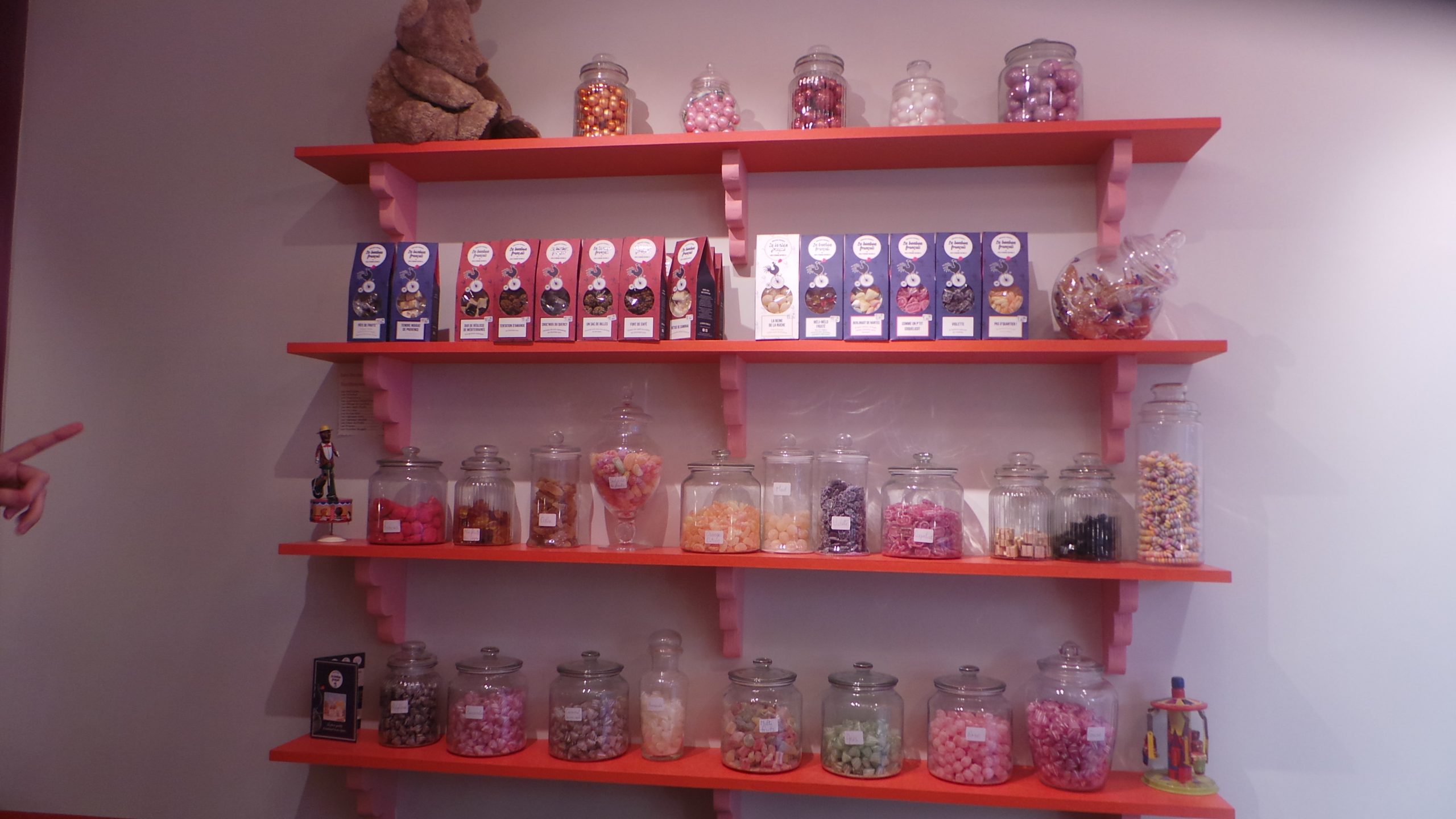 Dans la boutique, vous allez être émerveillés en premier lieu par la décoration. Vous vous sentirez comme dans une maison de poupée au mille et uns parfums de bonbons, du thé, des spécialités de la région. Tout cela disposé sur de belles étagères. Je ne vous en dirai pas plus. Surprise, surprise.